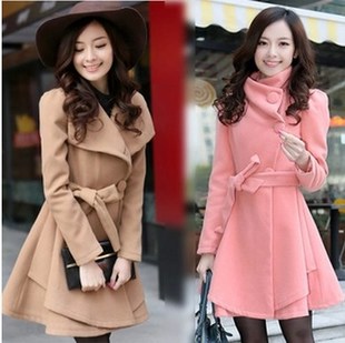 廠家直銷秋冬新品風(fēng)衣韓版女裝修身翻領(lǐng)中長款氣質(zhì)呢子裙擺大衣 /