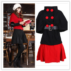 2014秋冬新款韓版斗篷式毛呢短外套+半身裙套裝 /