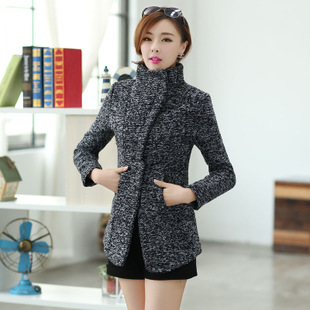 實(shí)拍 2014秋冬女裝毛呢外套韓版短款妮子修身呢子大衣 /