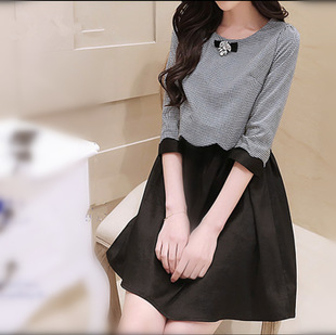 2014東大門新款女裝 品牌同款連衣裙 秋季韓版假兩件千鳥格連衣裙 /