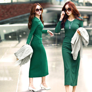 秋裝韓版針織棉質(zhì)連衣裙包臀長袖長裙女 秋季連衣裙 女裝批發(fā) /