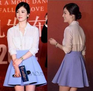 2014年夏季女裝宋慧喬明星同款修身韓版顯瘦蓬蓬傘裙小香風(fēng)套裝 /