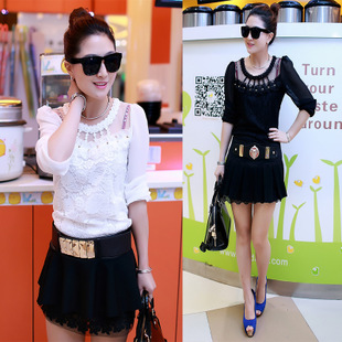 招收代理2014新款秋裝長袖大碼韓版雪紡衫蕾絲打底 寬松上衣女裝 /