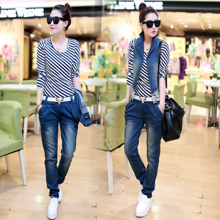 一件代發(fā)新款春裝 韓版休閑三件套牛仔女士套裝修身顯瘦女裝 /