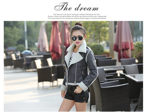 2014秋冬韓版新款鹿皮絨外套女 時(shí)尚長短兩穿翻領(lǐng)機(jī)車服外套 /