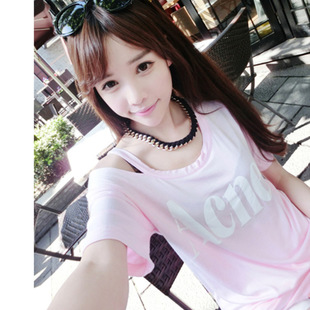 2014夏季新款 露肩韓國短袖女t恤女夏裝 服裝衣服 地?cái)偱b貨源 /