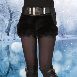 1件代發(fā)女裝 歐洲站2014冬裝款兔毛皮草短褲靴褲加厚PU皮短褲女潮 /