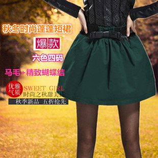 歐洲站高腰蓬蓬裙女 2014秋冬款蝴蝶結(jié)百搭大碼女士半身裙短裙女 /