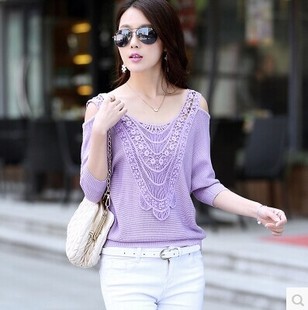 2014春秋新款棉韓版蕾絲拼接針織衫女短款 套頭針織衫 /