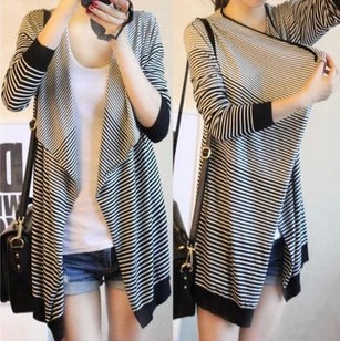 2014韓版時尚不規(guī)則披肩優(yōu)質(zhì)條紋針織衫女裝開衫寬松外套 /