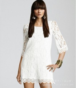 歐美款時尚連衣裙 新款 七分袖蕾絲荷葉邊 連衣裙Cly-7-004 /