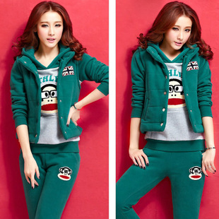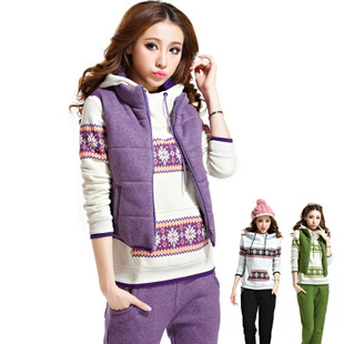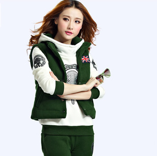 2014新款韓版衛(wèi)衣三件套加厚加絨 女秋冬裝學(xué)生運(yùn)動(dòng)休閑套裝大碼 /