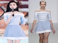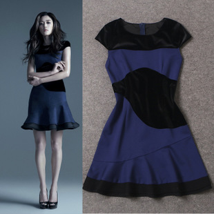 【明星同款】2014早秋女裝新款絲絨拼接修身顯瘦魚尾擺修身連衣裙 /