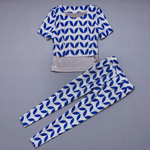 【明星同款】歐美女裝新款 印花短袖上衣+小吊帶+小腳褲三件套裝 /