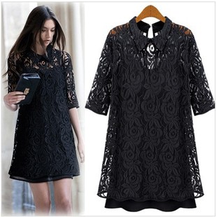 實(shí)拍 1330# 春裝新款蕾絲連衣裙女歐美風(fēng)格中袖翻領(lǐng) 修身韓版 /