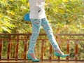2014新款秋季女裝時(shí)尚碎花小腳褲 牛仔混紡棉印花修身長褲鉛筆褲 /