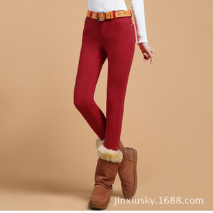 冬季加絨牛仔褲加厚加絨打底褲 女裝時(shí)尚款彩色絨女式牛仔褲 /