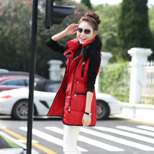 韓版冬裝新款女裝時(shí)尚修身抽繩中長款馬甲批發(fā)配仿真毛領(lǐng) 女式馬 /