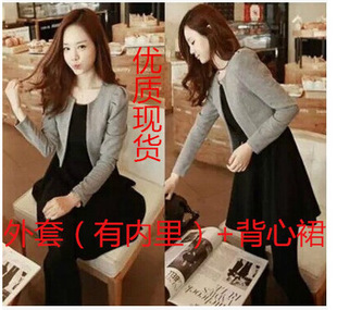 2014秋季新款時尚氣質(zhì)顯瘦收腰職業(yè)長袖連衣裙子小外套韓版 /