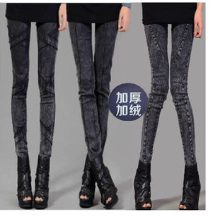 2014秋冬大碼顯瘦女褲子 彈力牛仔褲 鉛筆小腳褲 加絨加厚打底褲 /