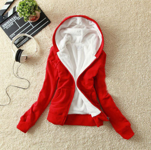 一件代發(fā)原單正品秋冬內(nèi)里抓絨加厚加絨女款純色大碼紅色休閑衛(wèi)衣 /
