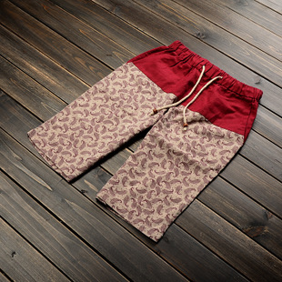 時(shí)尚外貿(mào)休閑純棉短褲 印花拼色沙灘褲中褲0876 現(xiàn)貨 /