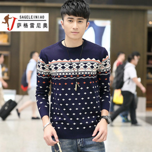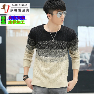 薩格 冬季新款男裝針織衫 韓版修身加厚青年圓領(lǐng)毛線衣潮男 /