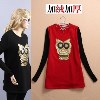 秋冬新款韓版寬松大碼圓領長款加絨衫厚款卡通保暖打底衫8250 /
