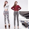 加絨加厚牛仔褲女 印花彩繪牛仔碎花小腳褲鉛筆褲 修身保暖打底褲 /