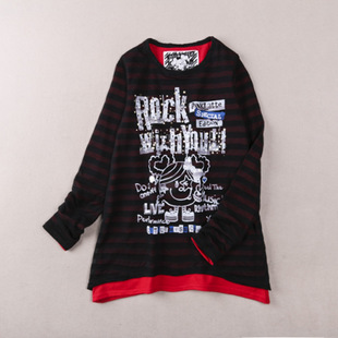 日韓女裝外貿(mào)原單批發(fā)全棉大童親子裝雙層假兩件休閑長袖T恤P55 /