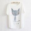 2013夏季新款休閑卡通貓咪寬松日韓版蝙蝠衫女裝短袖t恤批發(fā)6033 /
