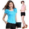2013新款時(shí)尚女裝 韓版蕾絲短袖肩花一字領(lǐng)休閑襯衣JY3001-B /