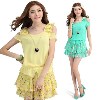 2013夏季女裝新款韓版雪紡拼接假二件短袖無領(lǐng)連衣裙JY5008 /