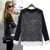 9833新款服飾 歐美時尚雪紡拼接寬松針織衫長袖上衣女士服裝批發(fā) /