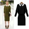 網(wǎng)店代發(fā) 歐美女裝2013秋冬裝新款針織衫拼接修身長袖中長款毛衣 /