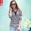 秋裝女式長袖 修身長袖T恤 羅紋棉條紋韓版T恤 V領打底衫批發(fā) /