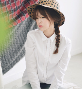 • 2015韓國代購款文藝修身女裝襯衣長袖白色長款襯衫打底襯衫 /