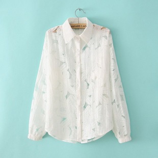 外貿(mào)原單2015春款韓板小清新唯美透視鏤空立體花朵襯衫襯衣批發(fā) /