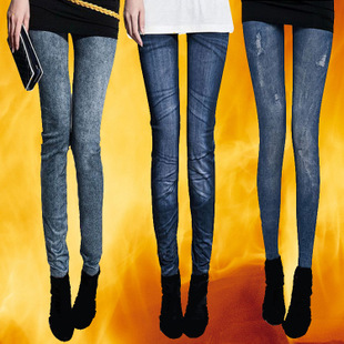 秋冬裝新款韓版潮顯瘦仿牛仔打底褲大碼長褲加絨鉛筆女式小腳褲子 /