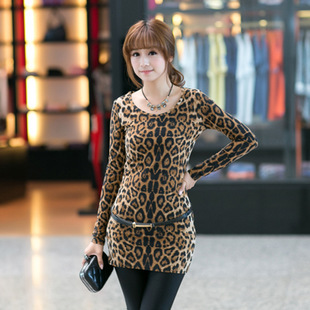 秋裝新款韓版潮修身打底衫女豹紋 /