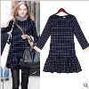 歐洲站秋裝新款女裝歐美大牌顯瘦百搭格子修身長袖連衣裙秋冬 /