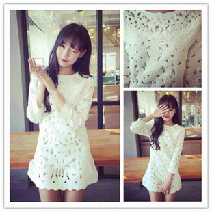 • 2015春季新款女裝韓版小立領(lǐng)設(shè)計(jì)鏤空蕾絲鉤花連衣裙 打底裙 /