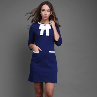 2015新款女裝歐美風(fēng)連衣裙修身氣質(zhì)女中袖連衣裙 /