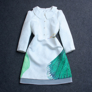 2015春裝韓版女裝 蝴蝶印花長袖裙子 新款品牌連衣裙 秋冬連衣裙 /