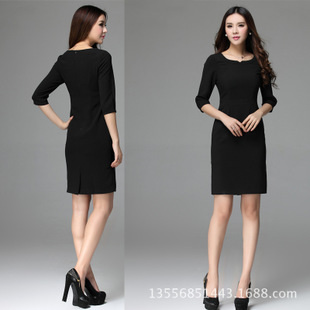 • 2015新款連衣裙春季新款中袖連衣裙 OL氣質(zhì)職業(yè)裙小黑裙 女裝批發(fā) /