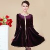 2013秋冬新款貴婦媽媽裝金絲絨純色拉鏈圓領長袖連衣裙女裝833 /