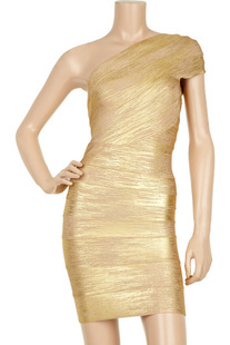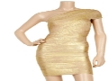 新款HLBCBG 董潔同款金色單肩歐美繃帶連衣裙禮服裙 /