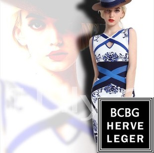 2014春裝新款HLBCBG 中國(guó)風(fēng)復(fù)古青花瓷性感修身繃帶裙連衣裙 /