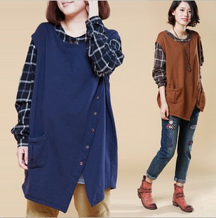 2014秋冬裝新款 原創(chuàng)英倫風(fēng)拼接衛(wèi)衣 大碼寬松假兩件打底衫 YSBS /