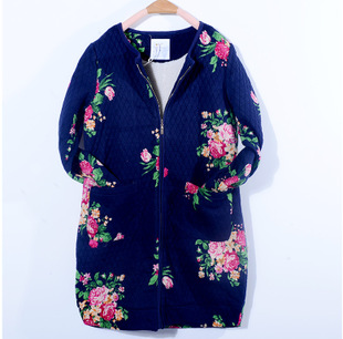 14秋冬甜美印花厚款加絨中長(zhǎng)款棉衣外套女 寬松休閑大碼保暖女裝 /